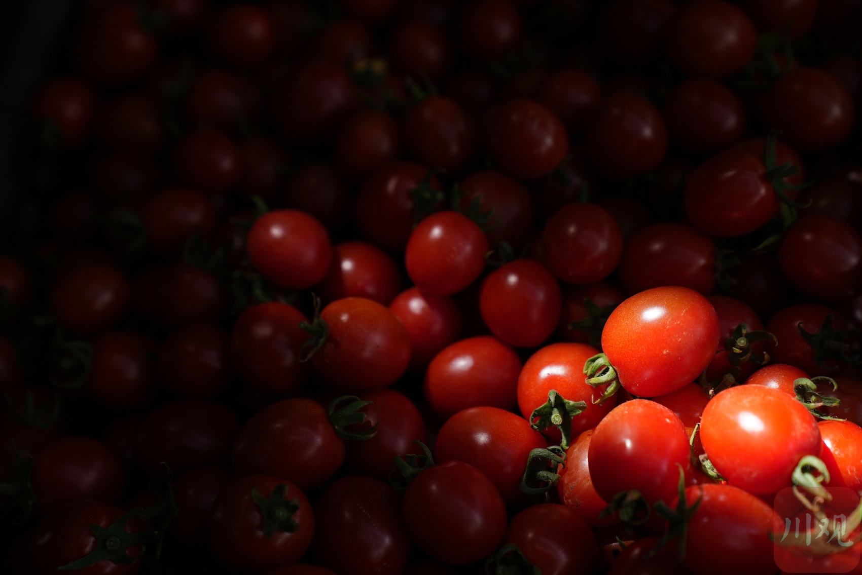 “我们这个小番茄味道好得很,测糖仪可以测到13个糖左右,比很多水果还好吃。”8月4日,位于四川省阿坝藏族羌族自治州松潘县川主寺镇的松潘高原现代农业产业园区内,丰收的高原水果小番茄进入了采摘期,园区现场管理人员侯建正在向客商介绍。大棚内,一颗颗红宝石般的小番茄缀满枝头,微微靠近便能闻到一股果香,果农们正忙着采摘、包装。