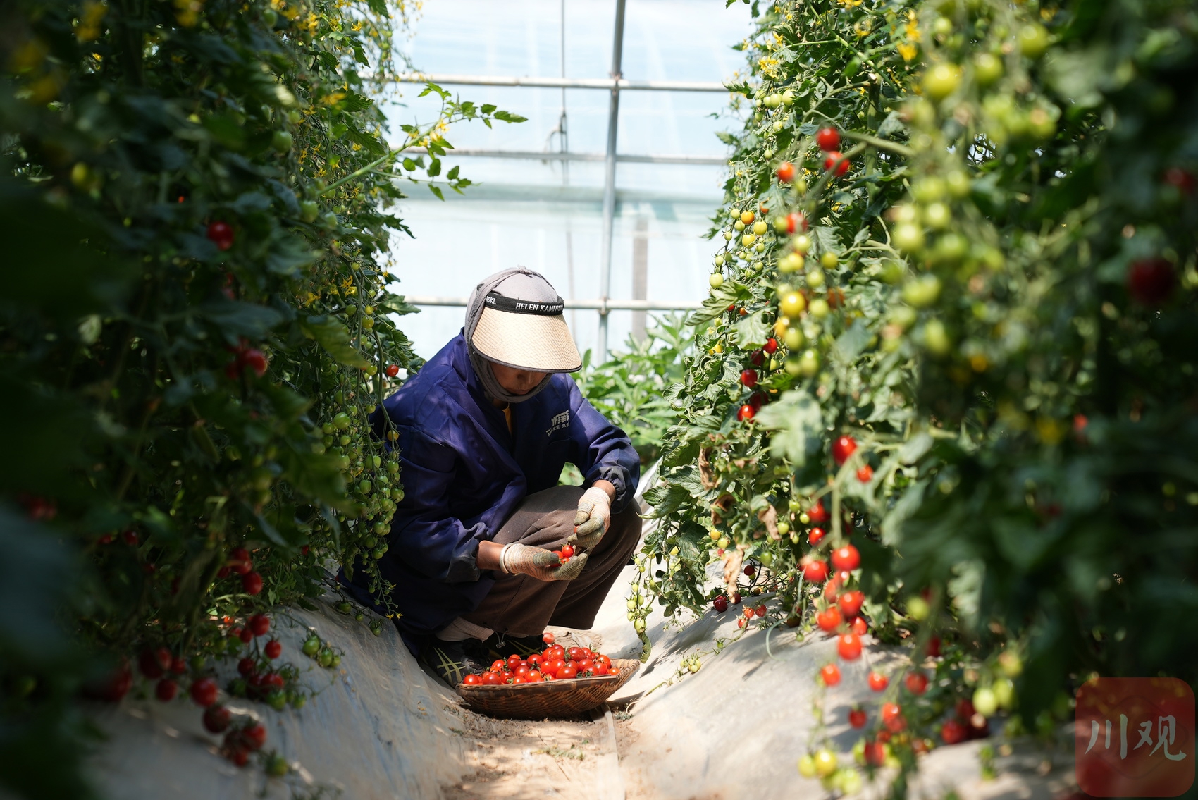 8月4日,松潘高原现代农业产业园区内,丰收的高原水果小番茄进入采摘期。