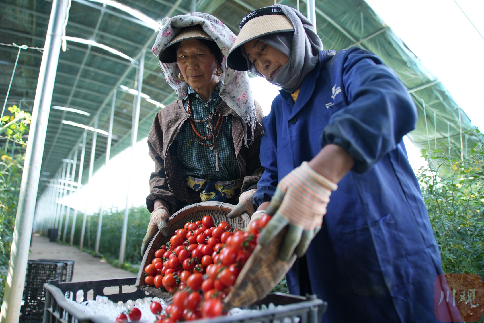 8月4日,松潘高原现代农业产业园区内,丰收的高原小番茄进入采摘期,果农忙着采摘、包装已。
