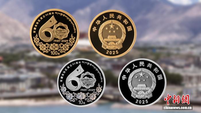 图为西藏自治区成立60周年金银纪念币样式。中国人民银行西藏分行供图