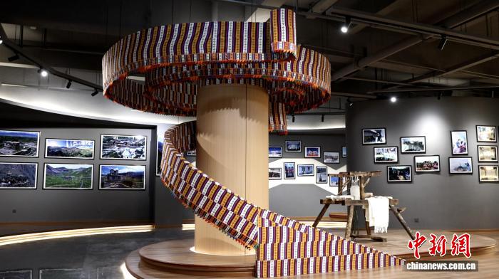 作为扎囊县“氆氇之乡”的灵魂技艺,这里陈列着传统织布机、多彩氆氇的实物,旋转式柱子上展示的氆氇成品更是令人惊叹:既延续着千年羊毛纺织的温暖质感,又透着当代匠人对传统技艺的新鲜诠释,展示扎囊人民代代相传的智慧与对生活的热爱。