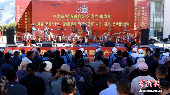 开幕式上,藏族舞蹈与传统音乐交织,来自扎囊县和邻近曲松县的表演者以灵动舞姿诠释高原生活的热情,欢快的节奏让现场掌声不断。这场融合了视觉与听觉的艺术开场,为展览营造了浓郁的文化氛围。