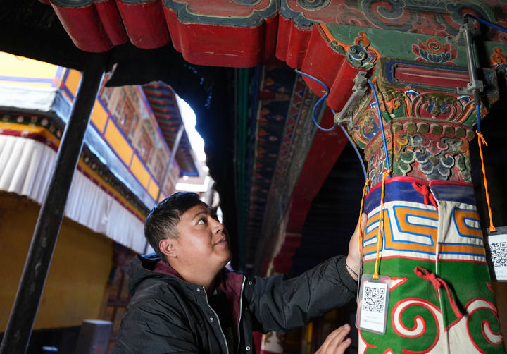 布达拉宫管理处副处长贡嘎扎西介绍:“我们可以监测环境温度、墙体和柱子倾斜角度等,为评估布达拉宫木结构、墙体和地垄的稳定性提供重要数据支撑。”