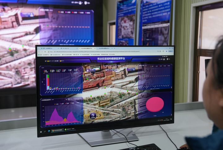 在布达拉宫监测中心,工作人员正忙着通过数字化平台,实时监控布达拉宫的“一砖一瓦”。