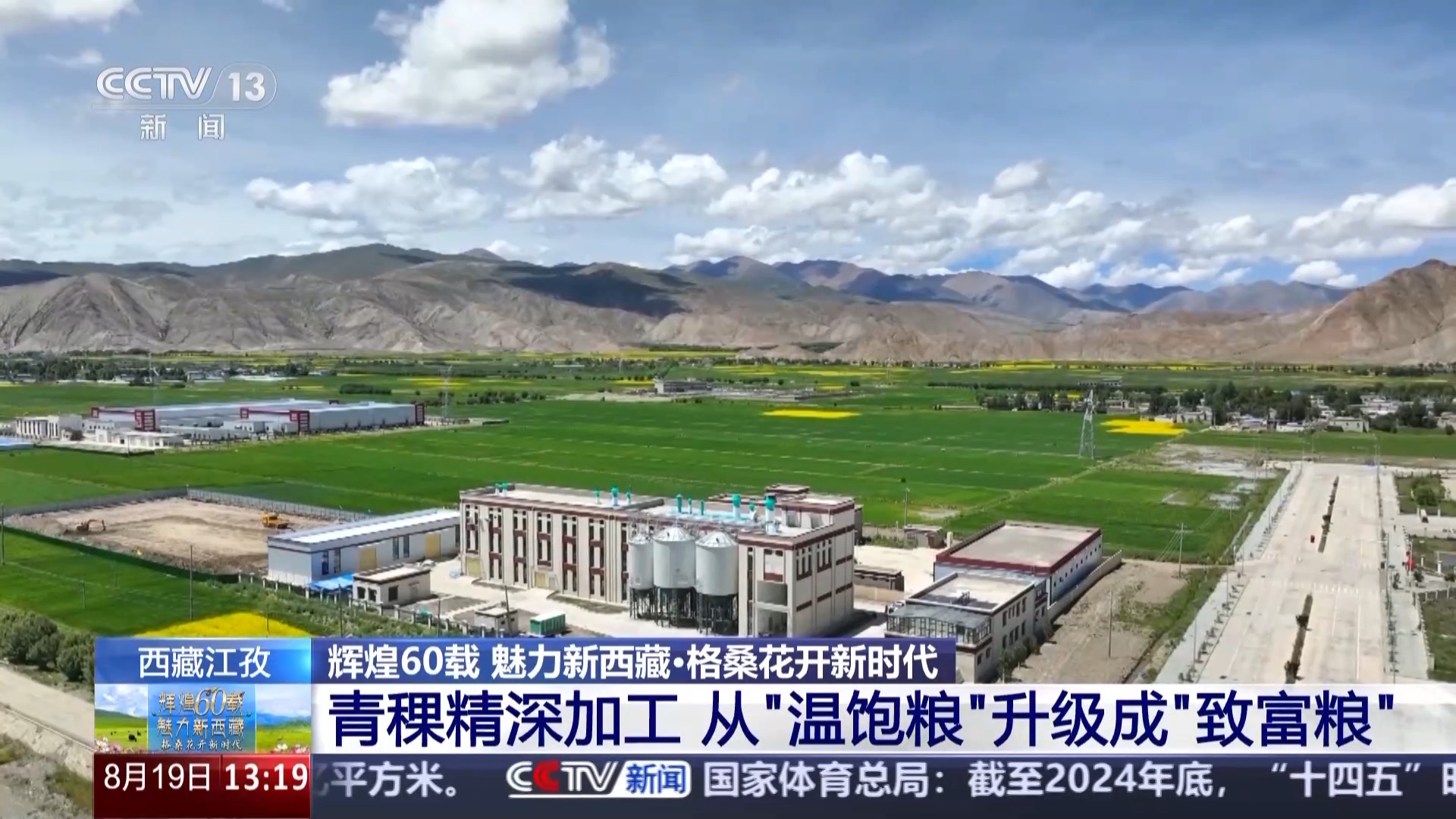 总台记者 于晨:我现在是在江孜县的一家专注于青稞产品研发的科技公司,去年9月,全国首条青稞谷物专用生产线在这里落地,填补了行业的空白,这让青稞的得粉率由原来的60%以下提升至了70%以上。