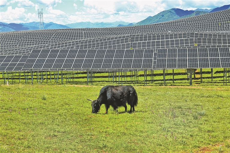 热瓦乡热热村是典型的牧业村,位于那曲市索县的群山峻岭之间。2023年12月,西藏开投集团投资建设的50mw牧光互补储能项目在这里并网发电,远远望去像是山坡上的“蓝色湖泊”。牧民们每天会赶着羊群来这里放牧,阳光透过光伏板的缝隙洒在草地上,羊群在阴凉下自由觅食。在光伏板的“庇护”下,不仅山地植被可以免受烈日大风的侵袭,还能对养殖的动物起到保护效果,在充分利用光能优势的同时,为乡村振兴注入新动能,实现企业和农牧民双向受益。