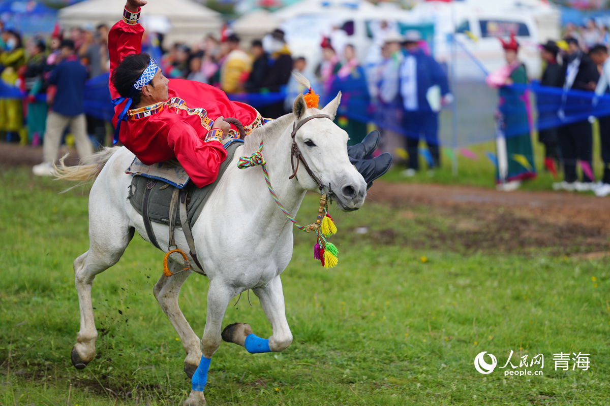 近日,青海省第八届少数民族传统体育运动会民族马术比赛在青海省黄南藏族自治州河南县腾格里赛马场开赛,来自青海省的9个代表队、119名运动员竞逐速度赛马2000米、速度赛马5000米、走马2000米、走马3000米、骑马拾哈达等子项目。